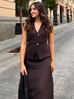 Tanie i rabaty TRAFZA Damski 2-częściowy garnitur Casual Fashion Dzianinowa kamizelka bez rękawów z dekoltem w szpic Kobieta Elegancki luźny zestaw spódnic z wysokim stanem hurtowe. Kup bezpośrednio w TRAFZA First Store.